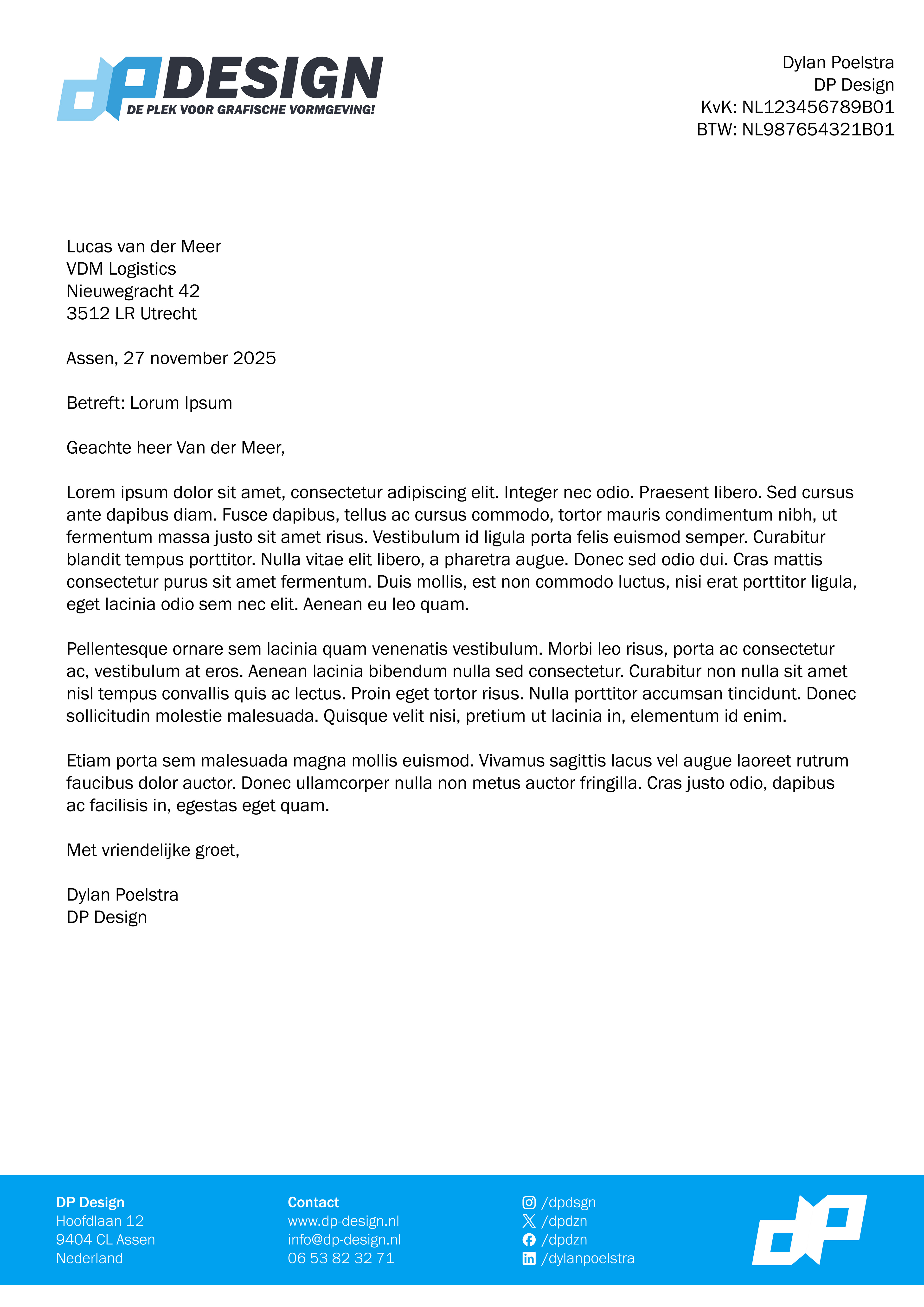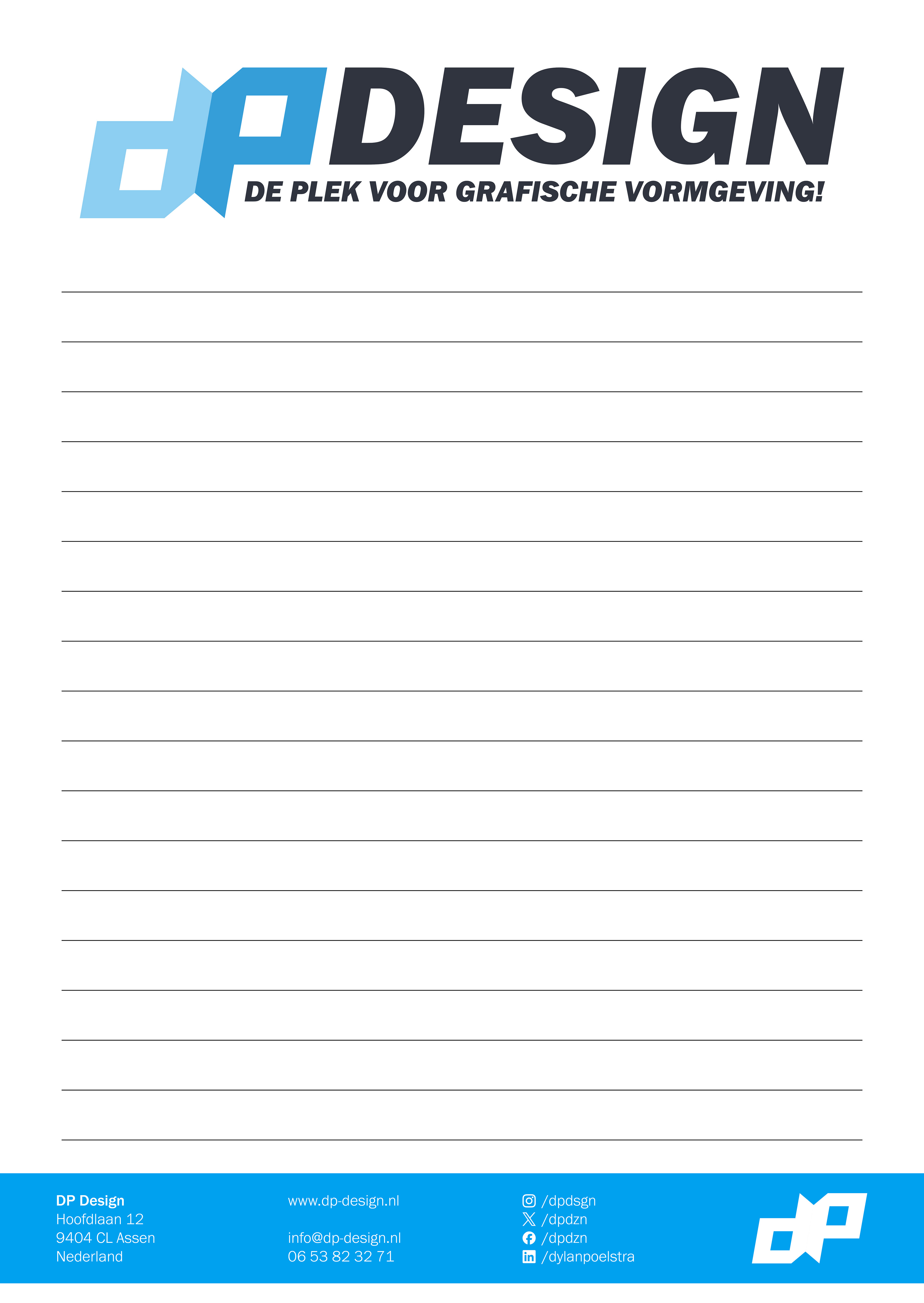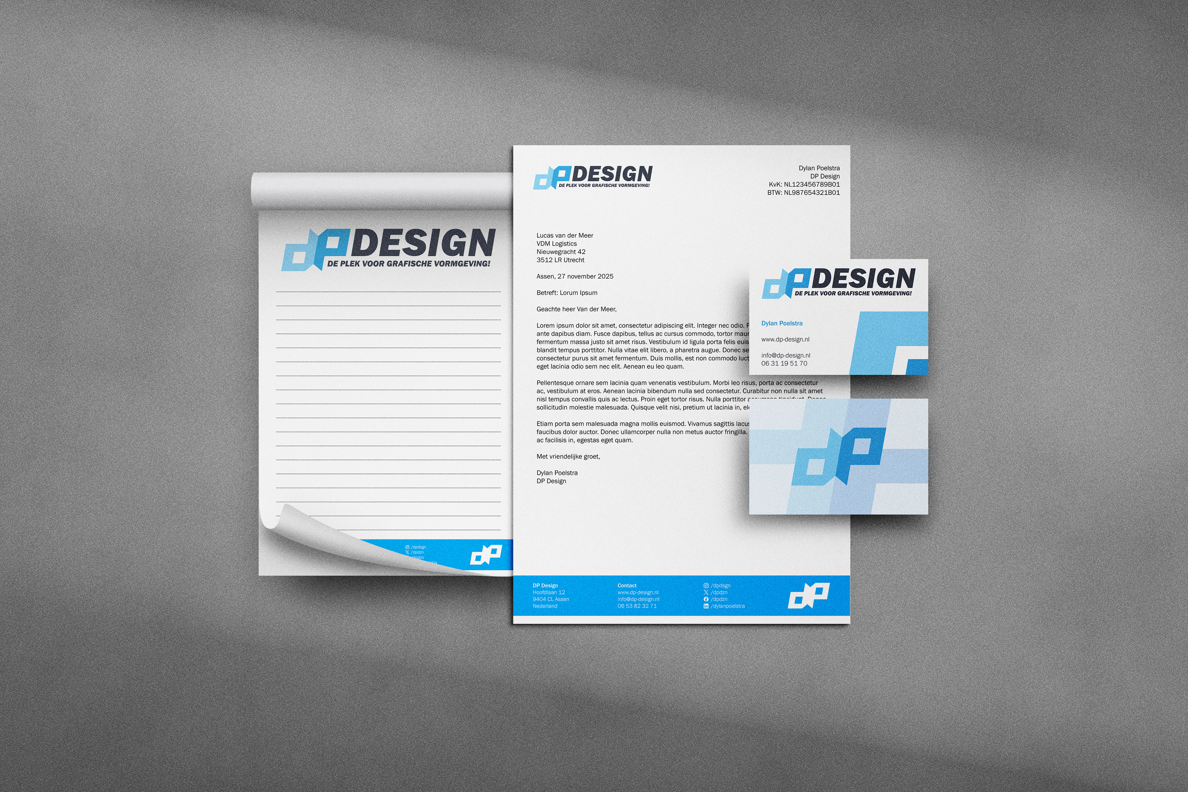 For myself, DP Design, I developed a consistent and professional corporate identity. This includes a sleek business card, stylish stationery and a handy notepad. The design reflects my signature abstract and clean style.